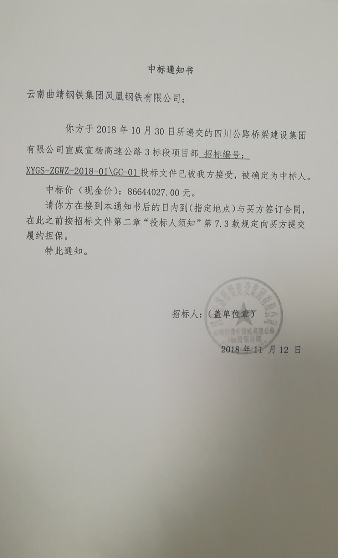 中标四川公路桥梁集团宣威宣扬高速公路三段